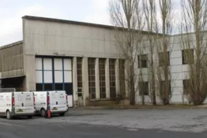 Grands bâtiments en brique, toits en shed. Bâtiments de stockage aujourd'hui.