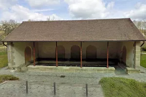 La façade de ce lavoir élevée en pierre de taille présente une succession de sept arcades, chacune rehaussée d’un tore....