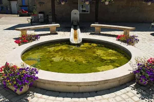 Cette fontaine, récemment restaurée, se situe au centre du village sur un pavage en pierre. Elle se compose d'un bassin...