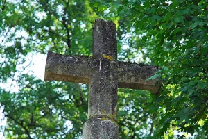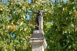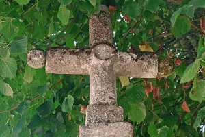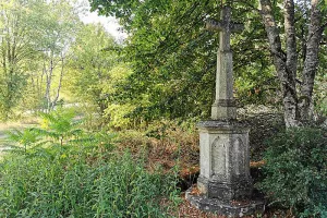 Arrivé au carrefour principal du village, on aperçoit à gauche sous un tilleul, une croix bouletée du XIXe siècle non da...