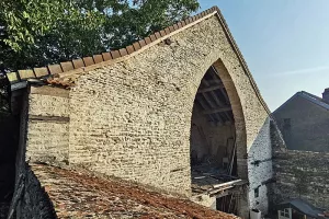 Cette ancienne grange médiévale, à l’imposante entrée en arc ogival, était encore entièrement couverte en laves il y a q...
