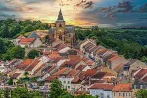 Surplombant la vallée de la Rosselle, une longue colline aux flancs abrupts confère à Hombourg-Haut un aspect très parti...