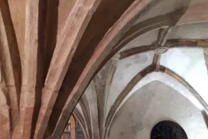 Voyage dans le temps, en traversant la salle du restaurant de l'Hôtel de Paris. On se trouve dans une authentique chapel...