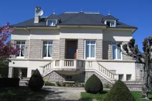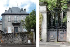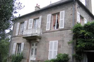 Cette maison rose aux tourelles à proximité de l'église de Meymac est le Château des Moines Larose, ou maison de Jean Ga...